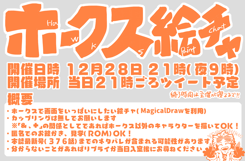 ホークス絵チャ!12月28日21時ごろから開催します!よろしくお願いします~!!