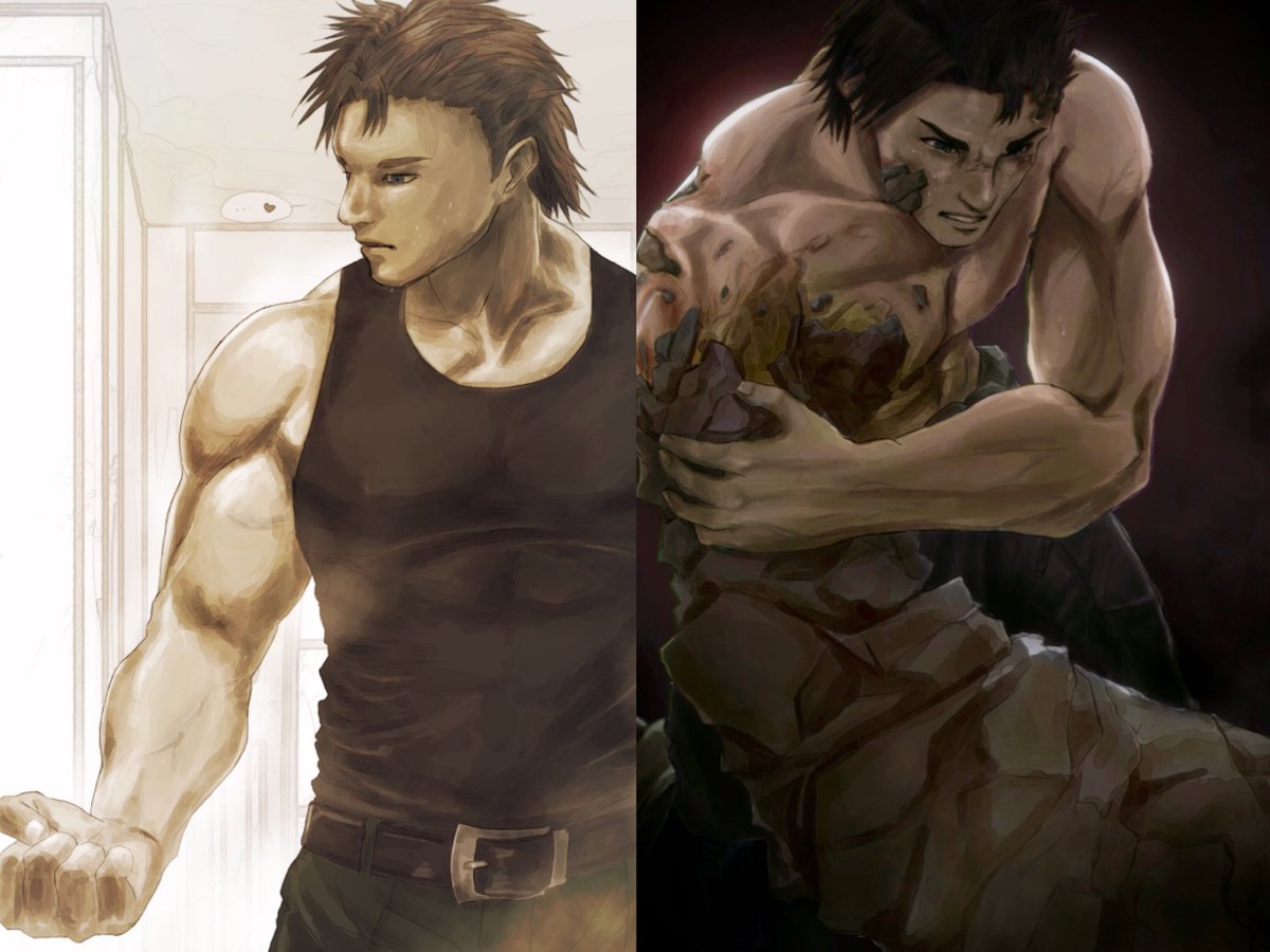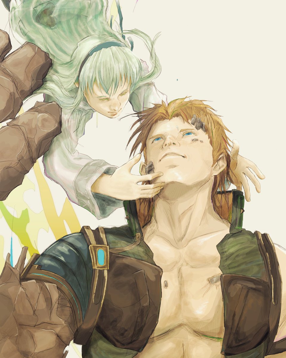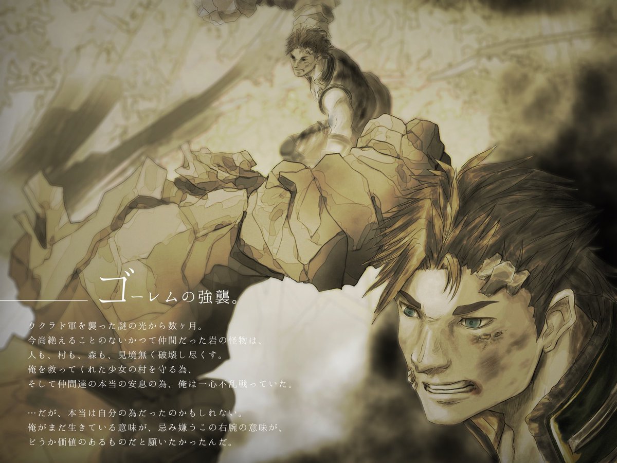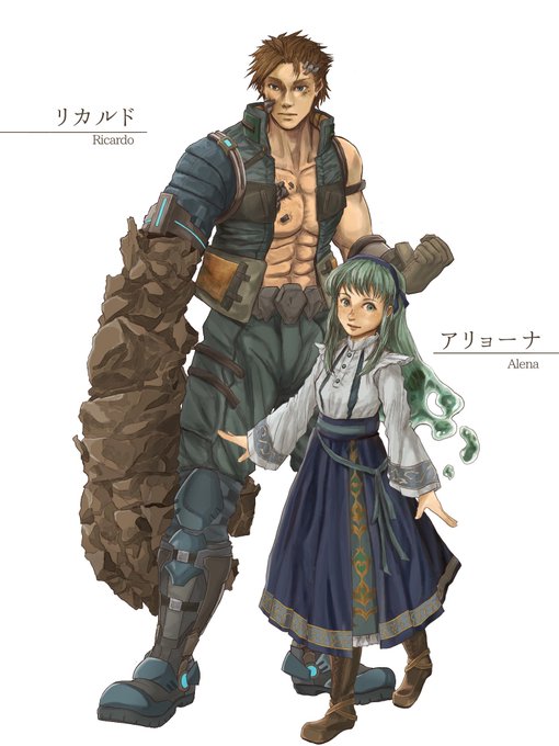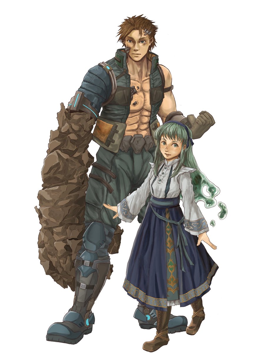 #ゴールデンウィークSNS展覧会2022 #一次創作 #GWはフォロワーさんが増えるらしい 一次創作【リカルドとアリョーナ】。 ウクラド国軍所属の兵士リカルドは戦争中に石呪を受け意識を失う。目覚めた後に見たのは怪物に成り果てた自分の右腕と緑髪の少女の姿。 これは、彼が自分の居場所を探す物語。