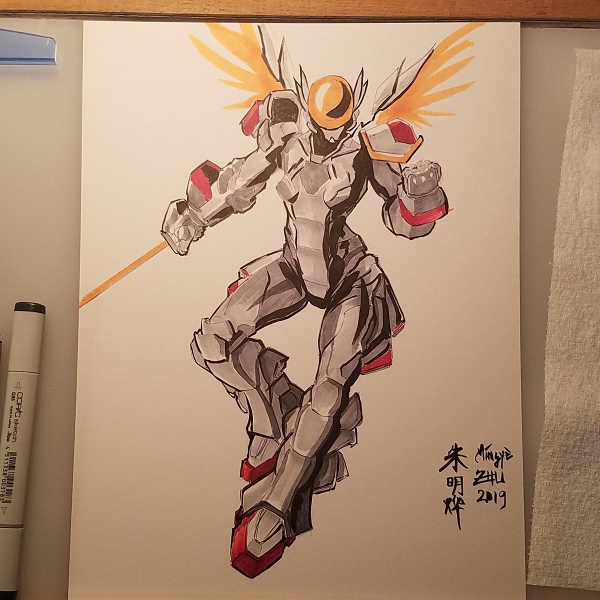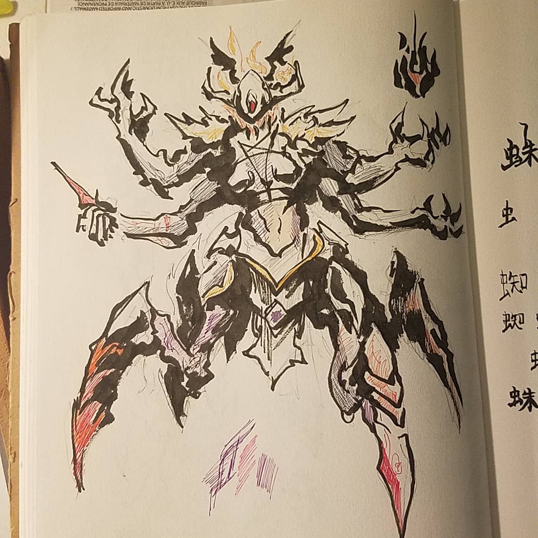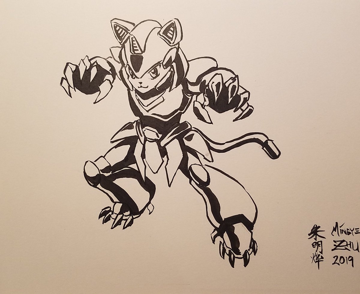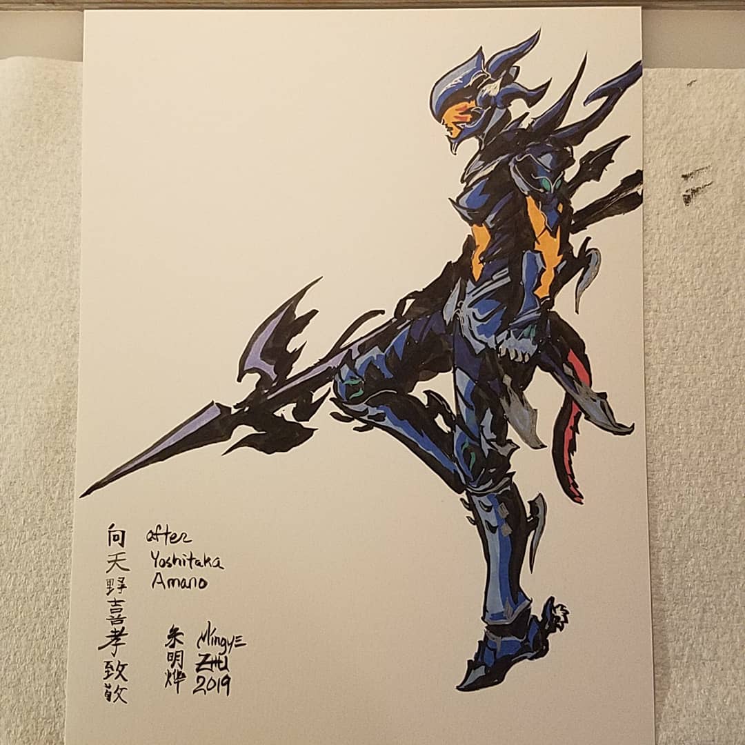 Repost for the art account. #Inktober #Inktober2019 A cyberpunk nine-tailed fox. Still riffing off that color palette from the Kochou drawing. Full ideation process on Instagram. Copic overkill though.