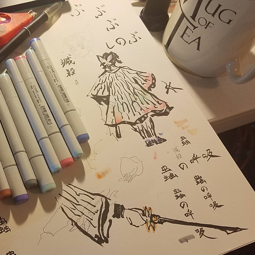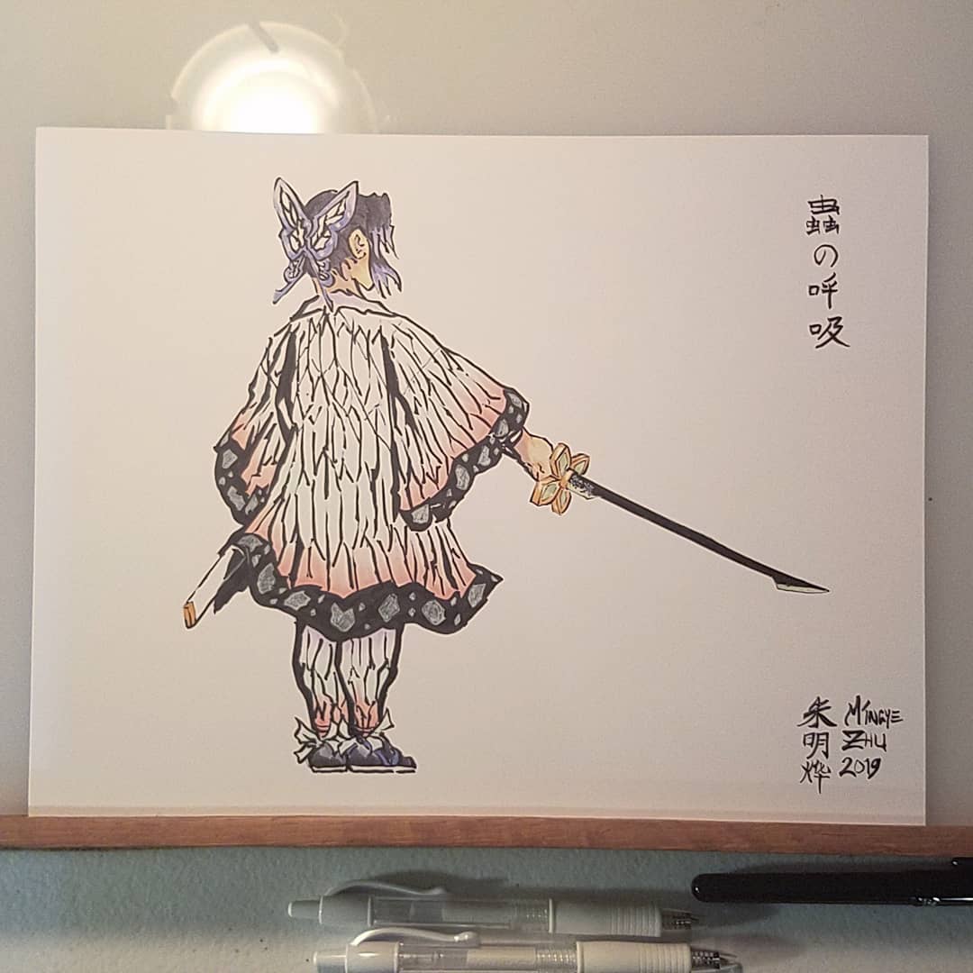 Reposting for art only account. The fan wiki had her sword engraving wrong. It's not 悪鬼, it was 滅殺. #inktober #inktober2019 #kimetsunoyaiba #DemonSlayer #shinobukochou #鬼滅の刃 #鬼灭之刃 #胡蝶しのぶ