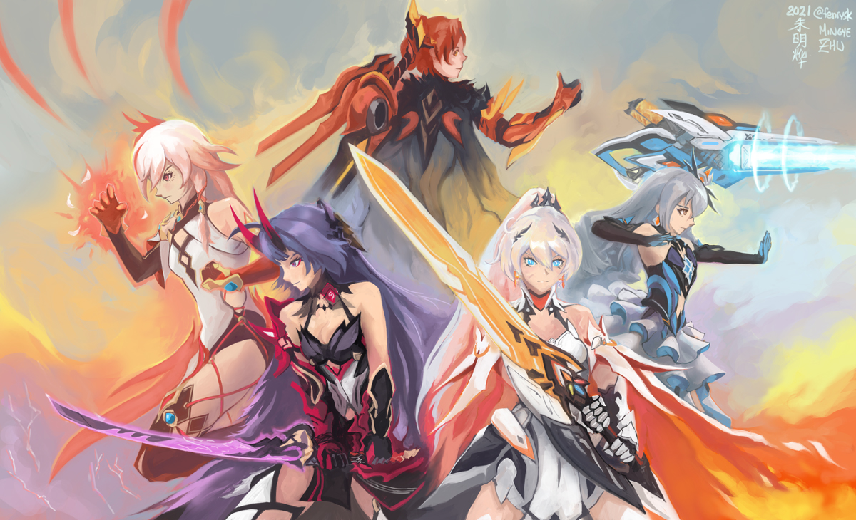 def not gonna be able to do one each day but gonna try as often as I have ideas. where my fellow FuHuanatics at Grips of Taixuan: summon 3 Xuanyuan sword projections to deal fire damage and apply time lock on the target #honkaiimpact3rd #swordtember #fuhua