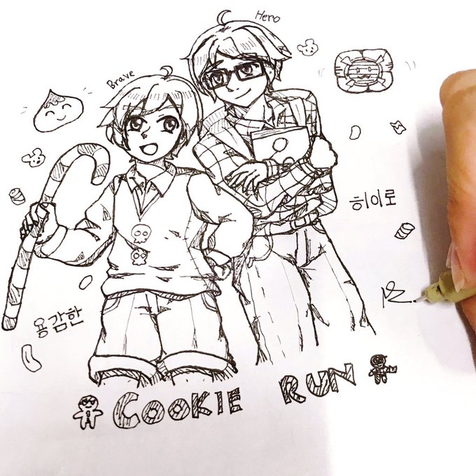 #Inktober day7-2 Hero Cookie +Ginger Brave If you start to play Cookie run,You will receive these 2 cookies easily. Ps.Just my head canon, Brave and Hero would be actual sibling together or some part of their family. #cookierun #herocookie #gingerbrave #fanart #코키런