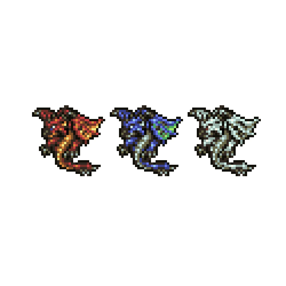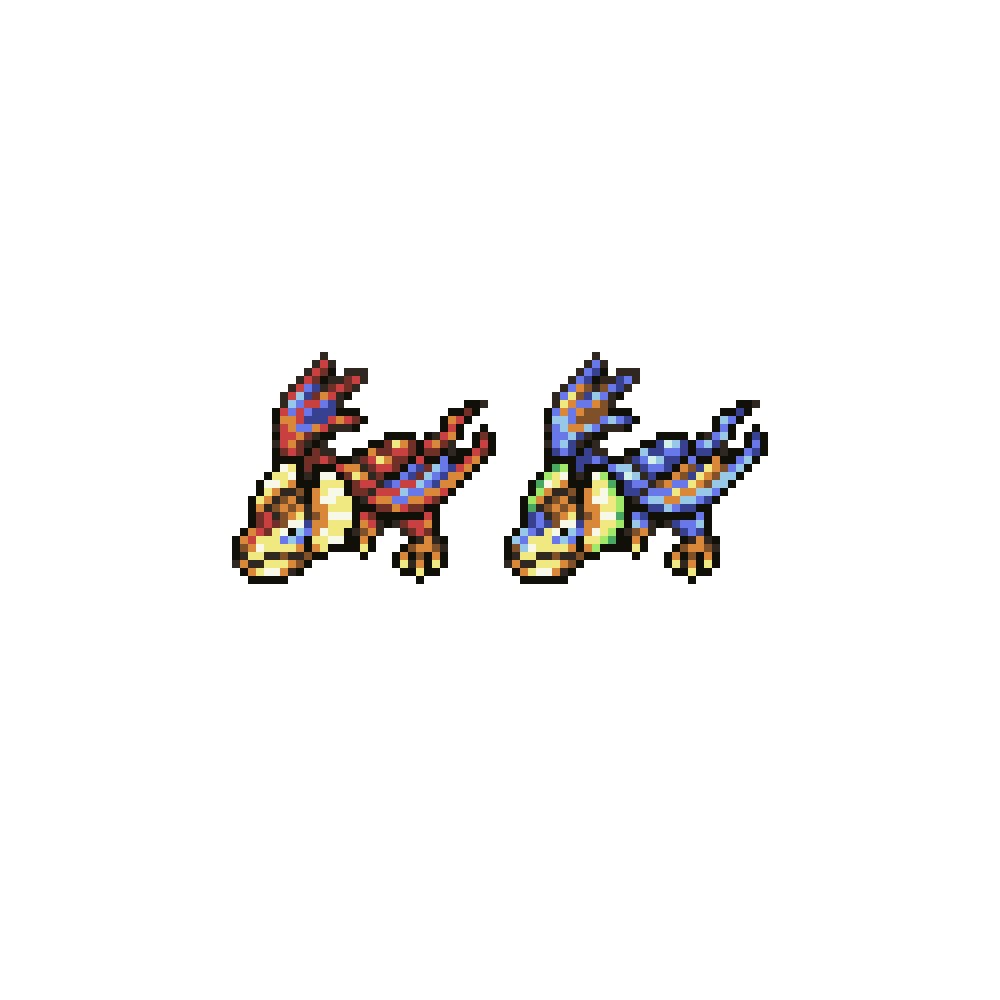 リオレイア三種盛り #MH #ドット絵 #タクティクスオウガ
