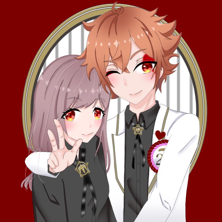 #ツイステ #ツイステ好きさんと繋がりたい #エース・トラッポラ誕生祭2020 エースと誕生日一緒なので夢絵にしてみた✨暖かい目で見てください😊 エース&私!!誕生日まだだけどおめでとう🎊✨