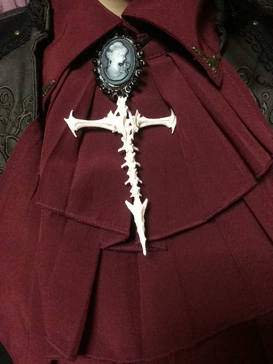 マスクフェスの戦利品✨ 骨のクロスを手に入れました! ネックレスですが、ジャボのパーツっぽくつけてみたらいい感じ(*´ω`*) (作者様:@mitragyna )