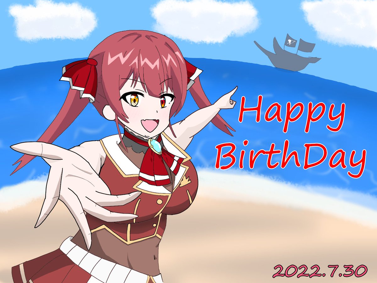 お絵描き初心者練習45日目 船長のお絵描きの配信とか見て自分でも描きたくなり、絵を描き始めました☺ これからもずっと応援しています✨ マリン船長大好き!! お誕生日おめでとうございます!🎉🎊 #宝鐘マリン生誕祭2022 #宝鐘マリン #マリンのお宝