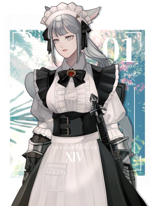 #FF14イラスト #FF14art ミコッテ×メイド×ガントレット