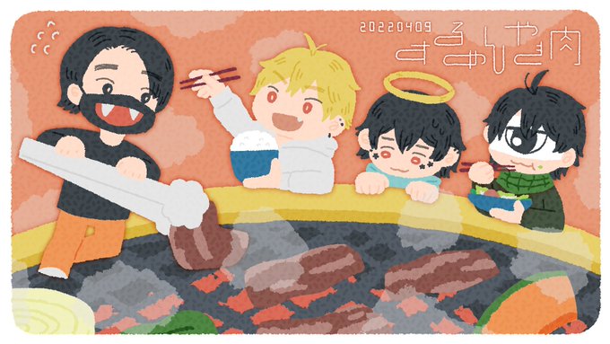 #はらぺこ恐怖症 癒しをありがとうございます…!6人の空気感がかわいくて大好きです🌲🪵🌷🫐🍗 #ちんぱんあーと #みおあーと #のす絵 #せんたんあーと #よつはがき #卯ノ花しうねち