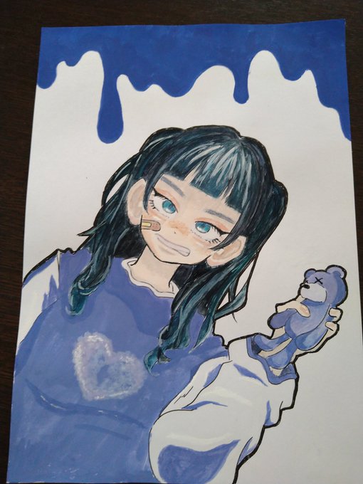0 2 できた🧸💓 #イラスト好きな人と繋がりたい #イラスト #水彩画 #オリキャラ #メンヘラ女子 #メンヘラ 21/08/09 22:58