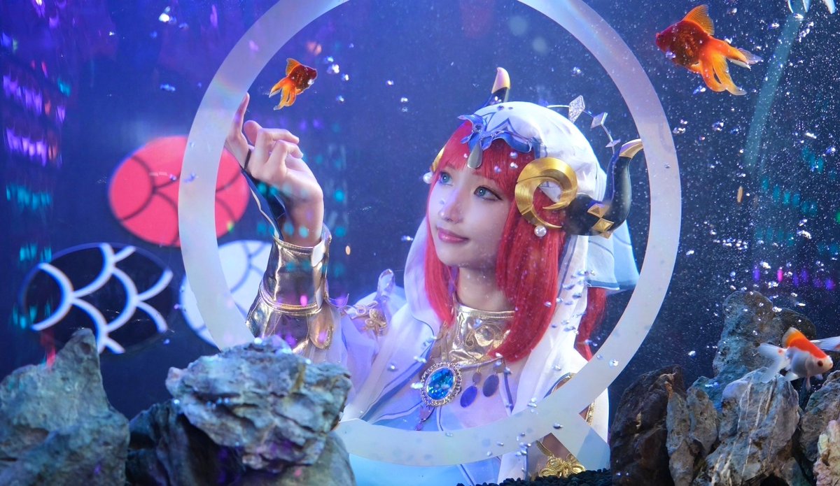 ⚠︎cosplay 原神/ニィロウ💐 #GenshinImpact #鴨コス #奈良金魚ミュージアム 水泡と戦い撮ってくださった 奇跡の1枚です…🥹🙏🏻✨ イベント:@shimogamocoseve 📸:@kiriya_daytona さん
