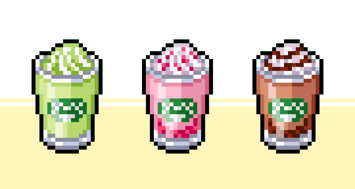 2 10 #ドット絵 #pixelart 3種のフラペチーノ 23/02/13 18:14