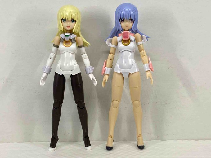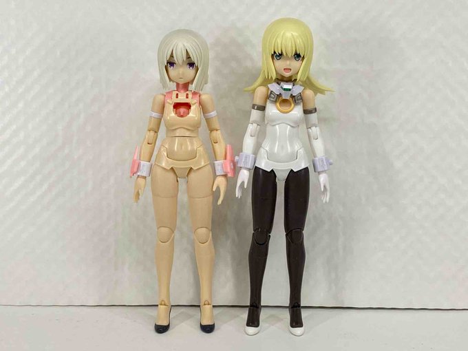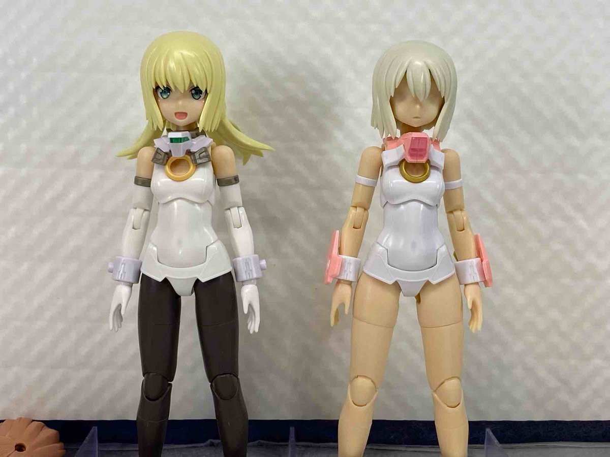 2 5 バーゼ出来た(素体(特典髪 マジカルと並べてみた スーツの白は同じ色じゃないんだね 目はノーマルバーゼの方が好みかな #メガミデバイス 22/08/21 03:20