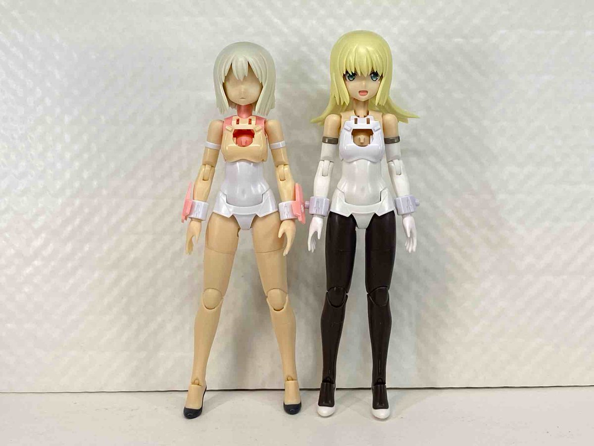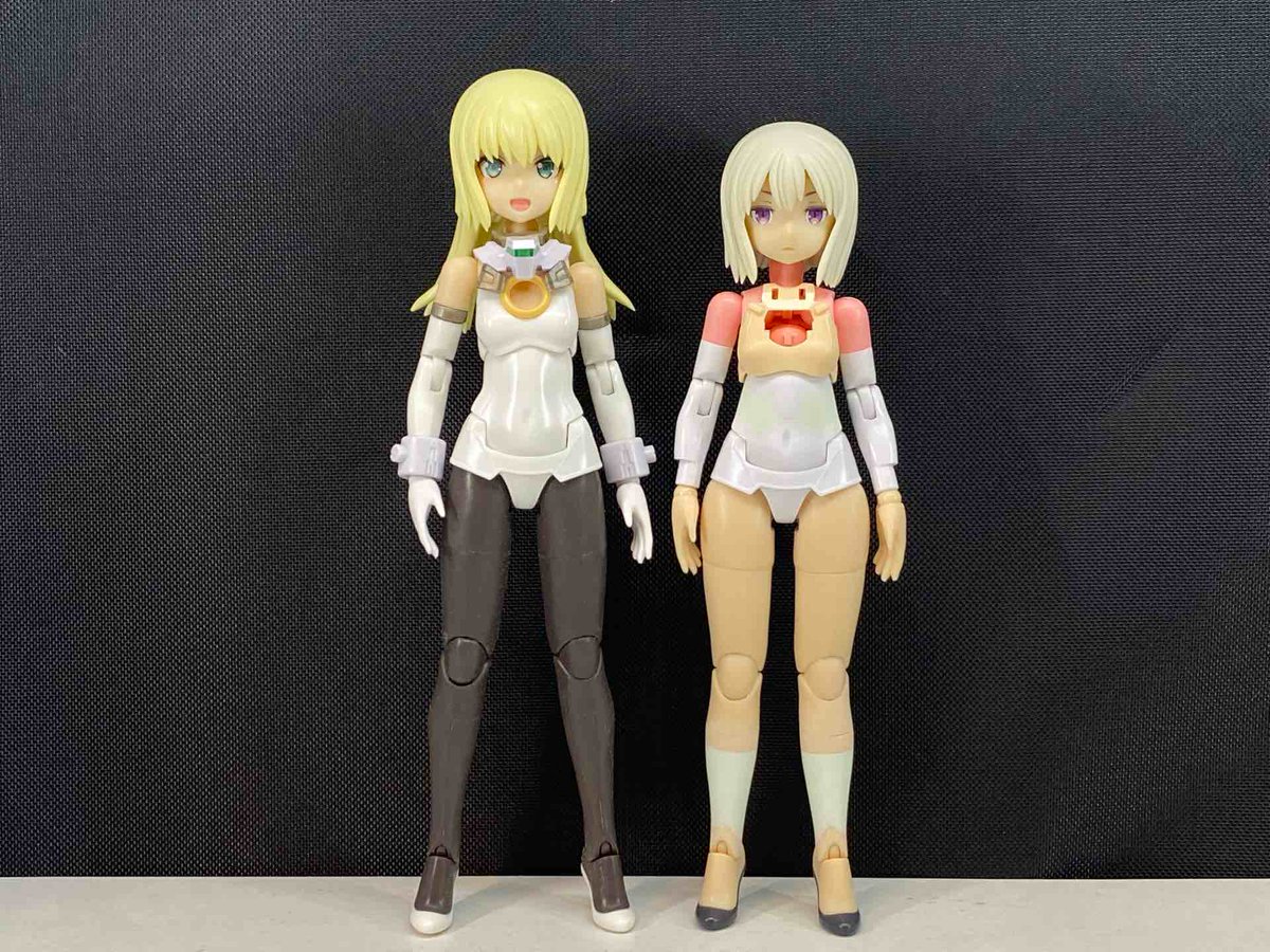 バーゼ出来た(素体(特典髪 マジカルと並べてみた スーツの白は同じ色じゃないんだね 目はノーマルバーゼの方が好みかな #メガミデバイス