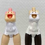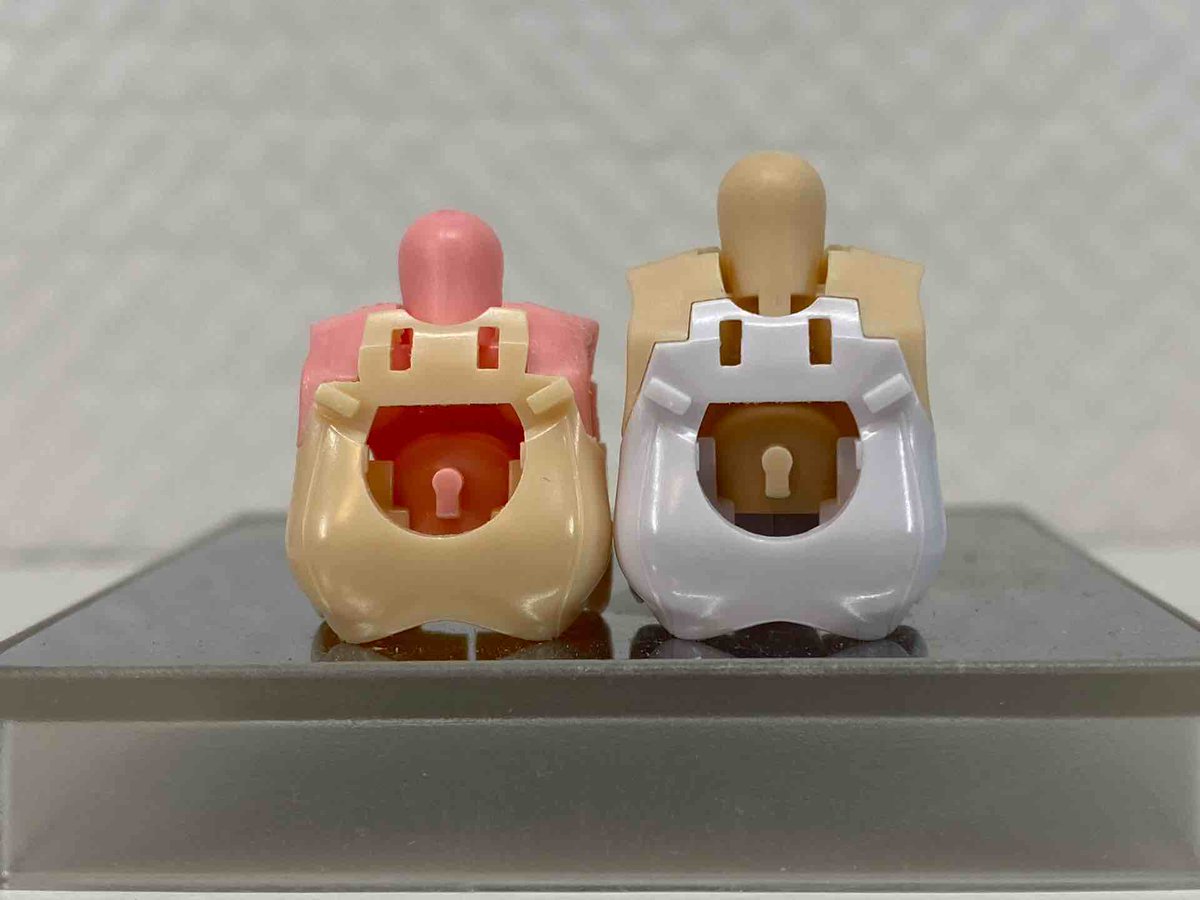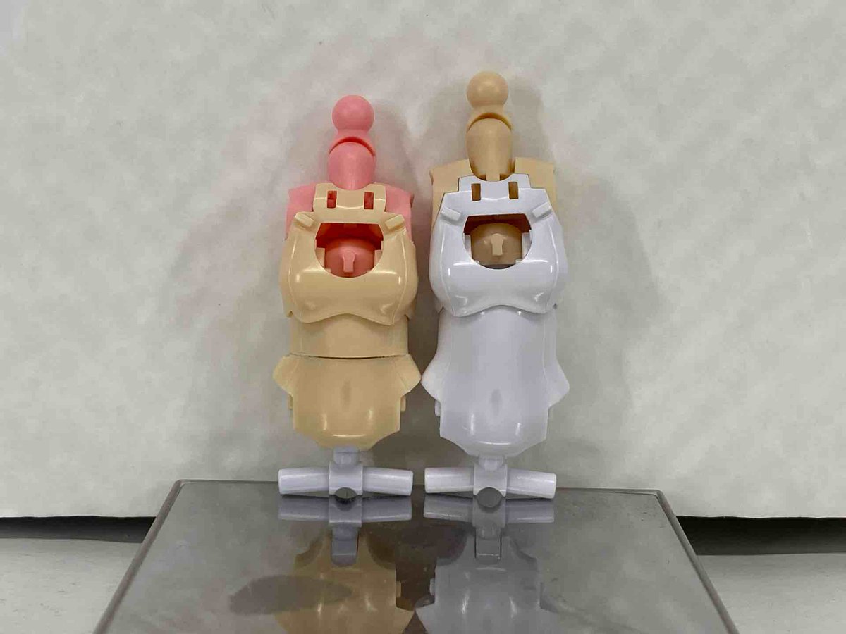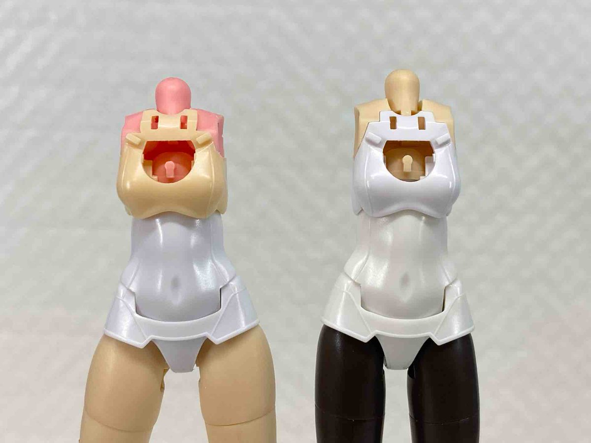 次は胸部を2mm強縮め これでも胸の位置は一緒 これはあちこち削らなきゃならないので、不要部品で試作 このあと使用部品で作ります #メガミデバイス
