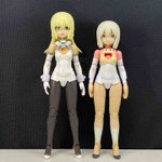 組み立て終わった(細部仕上げはまだ のでスサノヲと並べてみた 大きさは一緒だけど頭身がちょっと違いますね どっちもいい肉感😇 ジェネはなんか違う色で塗ってみたいけどそれはたぶん遠い未来の話になるでしょう… #メガミデバイス #ジェネ