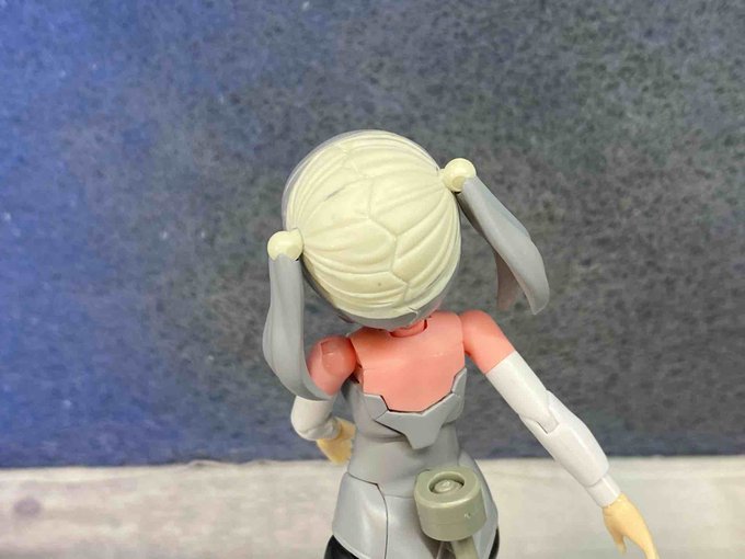 1 4 ツインテ付けた まだ違和感アリアリだからまだ修正するけど まあいい感じにしたい もう一つ付加物入れる予定だけど形状とか大きさに悩んでる #メガミデバイス 22/10/10 01:59