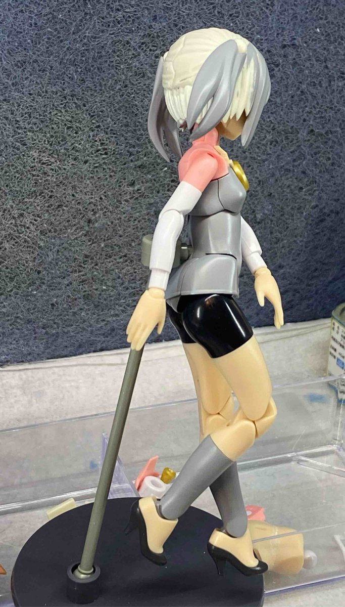 ツインテ付けた まだ違和感アリアリだからまだ修正するけど まあいい感じにしたい もう一つ付加物入れる予定だけど形状とか大きさに悩んでる #メガミデバイス