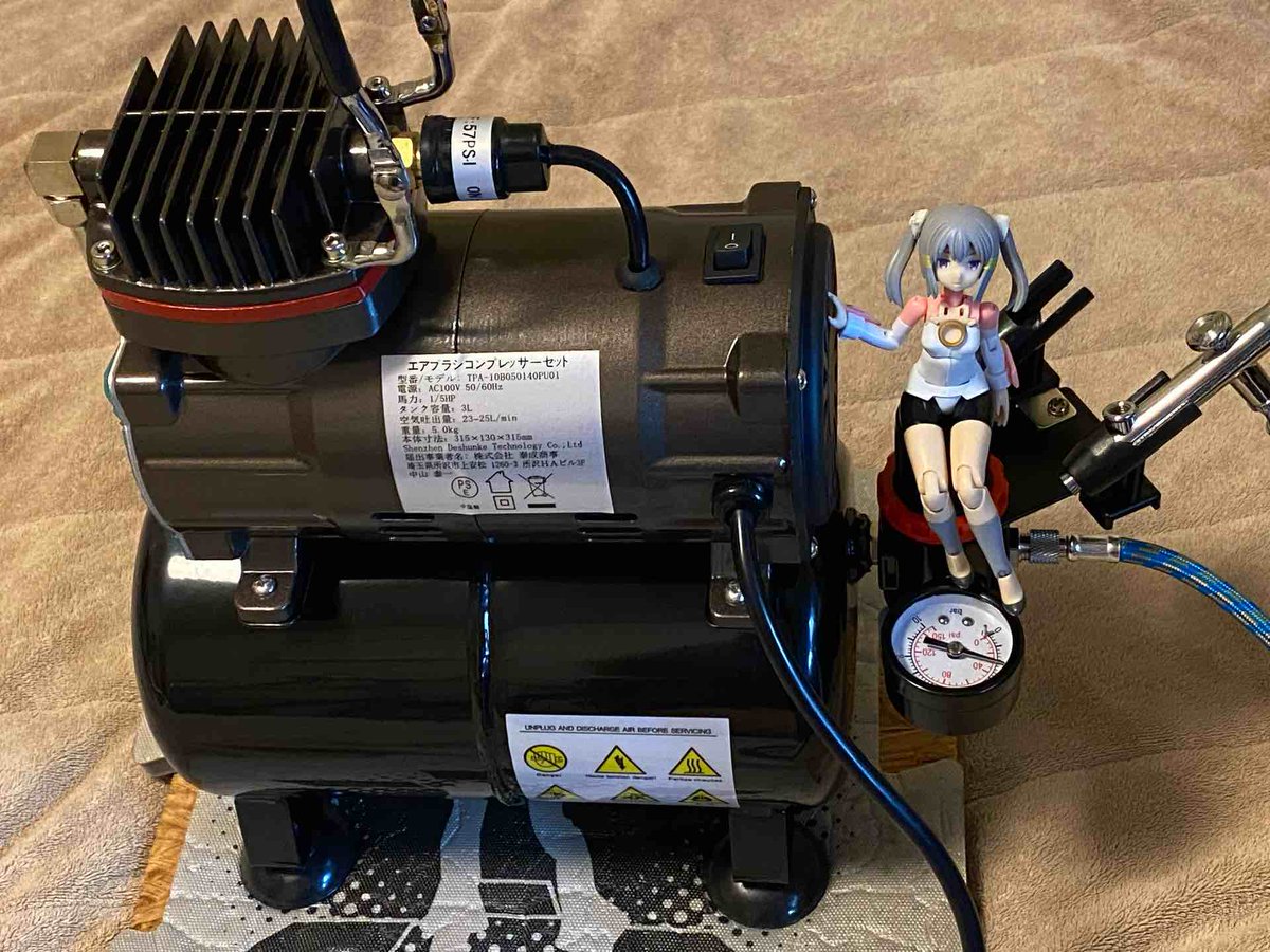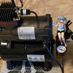 コンプレッサー買っちゃった😊 充電式より同じ圧でも風量が違う 音もそれほどうるさくないのでいい感じです やっぱり最初からそれなりの物買っとくのが最終的に安上がりだったわ #メガミデバイス #FAガール