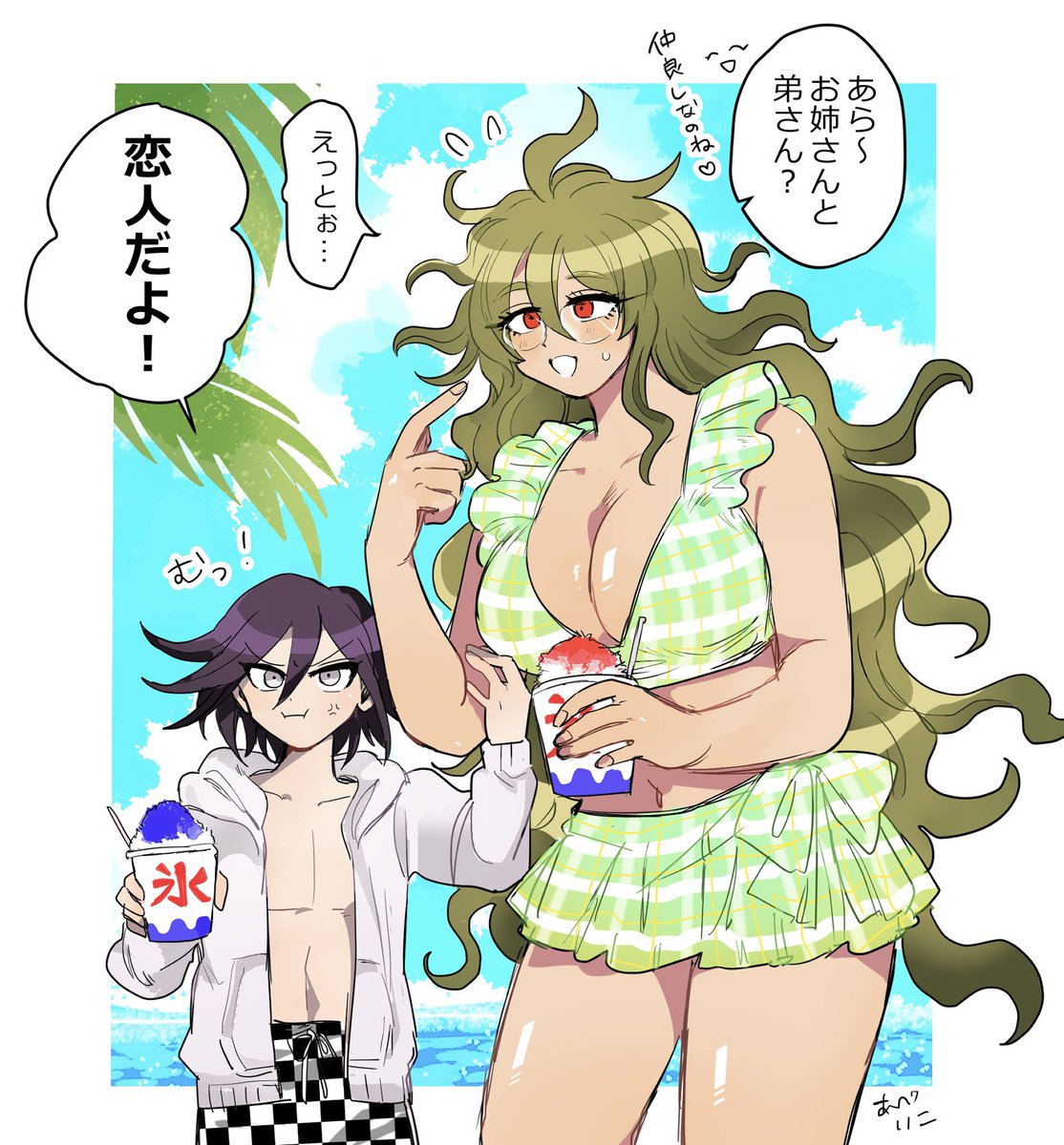 女体化 王獄♀が水着で海デート👙🏖🍹