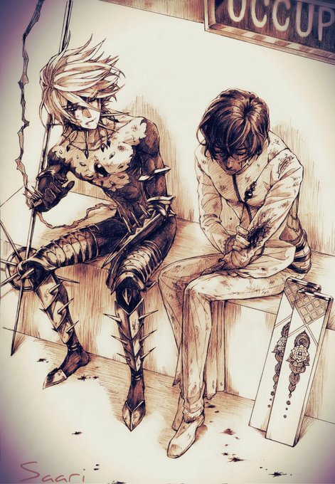描きかけカルナさんもう1人おる いつ仕上がるんだろう(鼻ほじ)