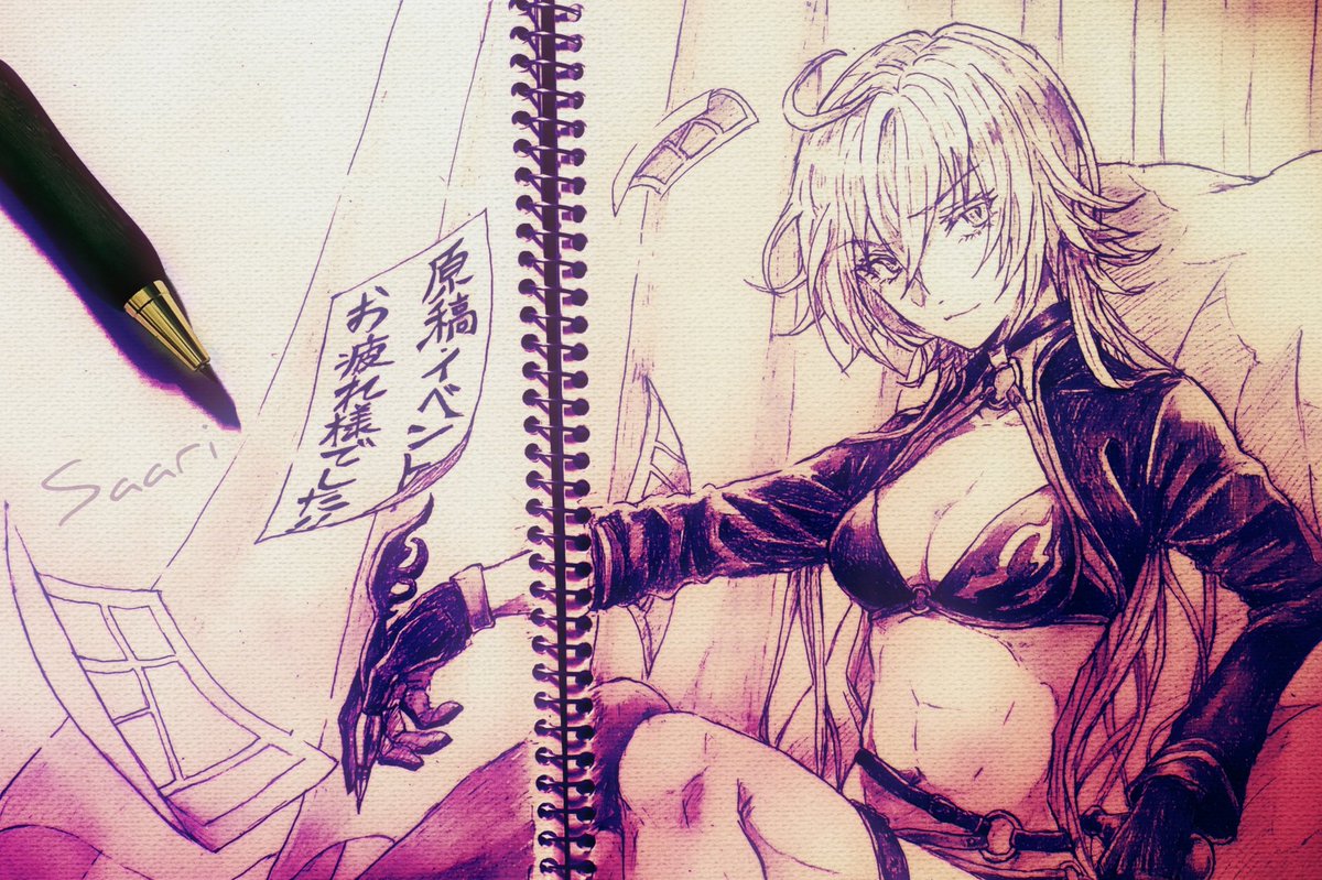 コミケ等の原稿されてた皆様お疲れさまでしたのイラスト🙌💟 そして邪ンヌ先生、サバフェス再登場おめでとう🎉!やったーー #シャーペン画