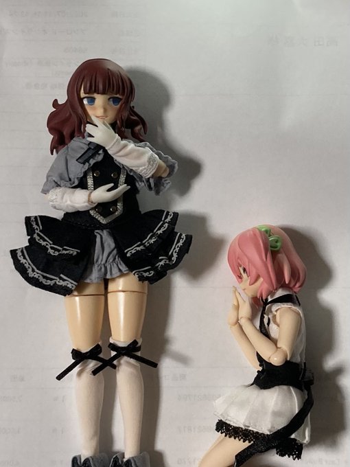そして我が家にも3サイズの楓さんをお迎えしました ピコ楓とピュア楓は親子みたいですわね🤍 それぞれ髪もPVC、植毛、ウィッグと違いがありますね やはりちゃんとしたライトやスペースが欲しくなってしまいますね…🤔 #アサルトリリィドール部