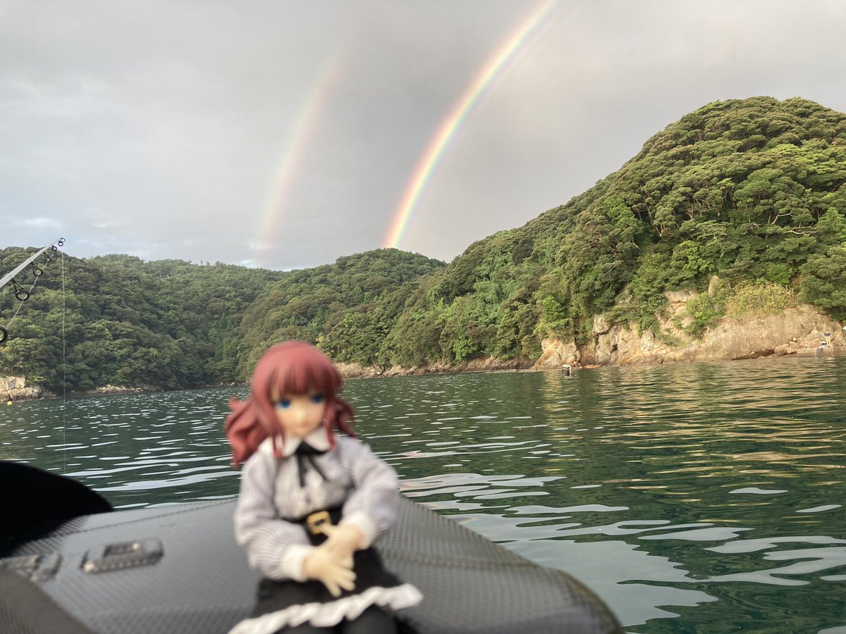 ちびっこが最近イカがどうのこうのと騒いでいたので日本海へ🎣 あくまでも梨璃さんに美味しいイカを召し上がって頂くついでにちびっこにも振る舞って差し上げると致しましょう 二重の虹も私を祝福してくれているようですわ🌈 #アサルトリリィドール部