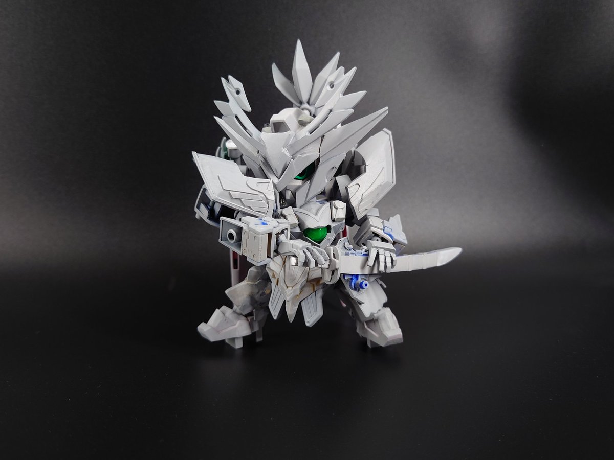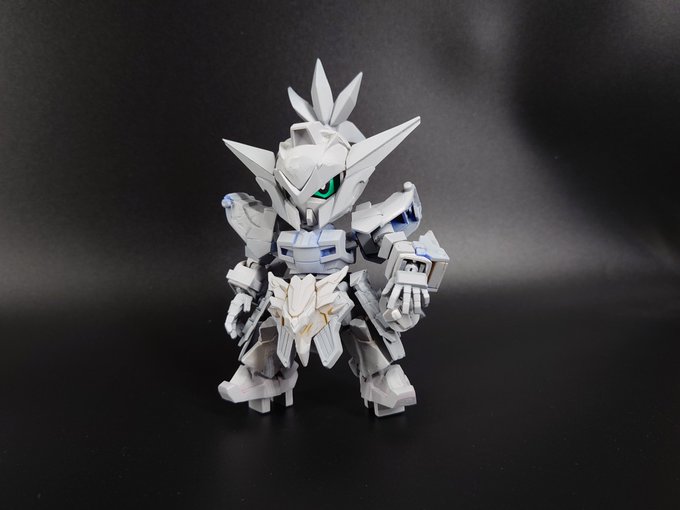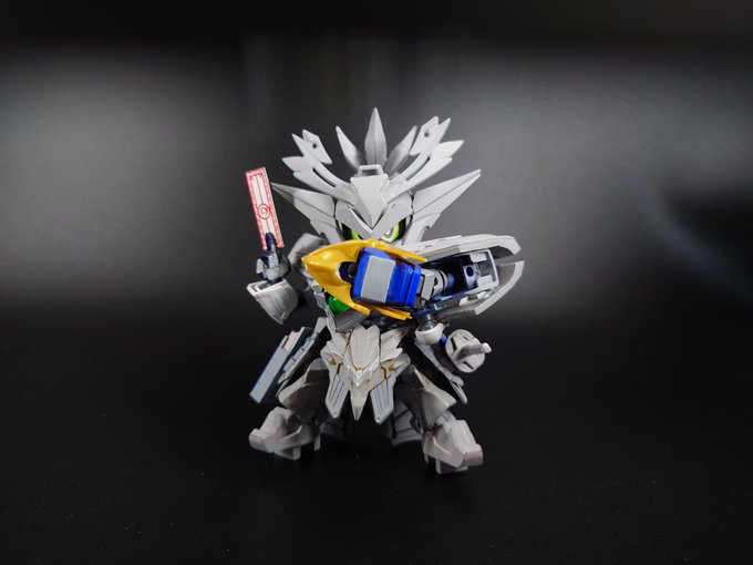 とんとん相撲用ゼータプラス完成! キットの造形が完成されてるので頭を1mm上げたのとハイメガキャノンの銃口?の追加とモールドの掘り直しだけしてます ロービジは最高だぜ… #SDガンダムとんとん相撲 #Gジェネとんとん相撲