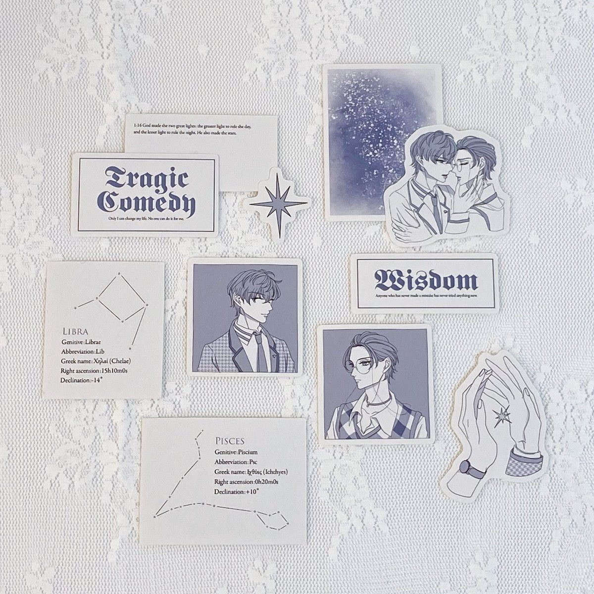 21 54 12.11のあいおまでステッカーセット出します〜!Télescopeのサークル名にちなんで望遠鏡で観る星とささろたち💍🔭 ✴︎ ろぬたちが持てるくらいの小さめサイズです 22/12/10 16:57