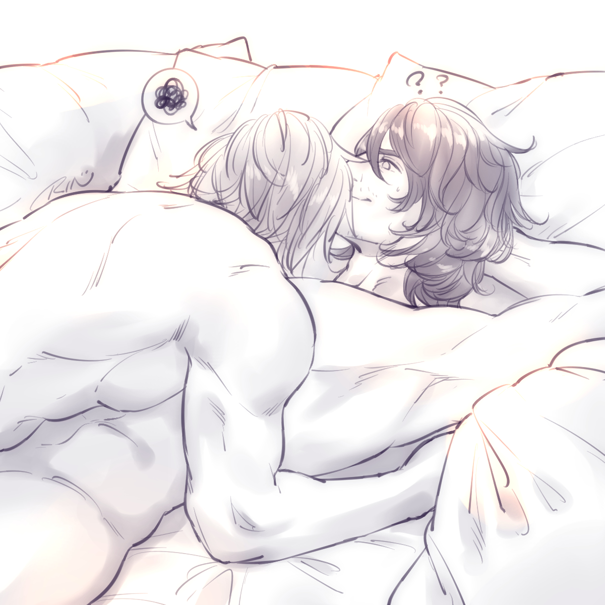23 70 お題:嫉妬するれいゔすくん 嫉妬の種類はおまかせ、とのことでしたので、アデおじの興味がほかに行ってしまった気がして気に入らなかったレイくんを描きました!でも言葉にして伝える勇気はないのでなんか行動に出るタイプだと思います。素敵なリクエストありがとうございました!😊 21/10/22 00:35