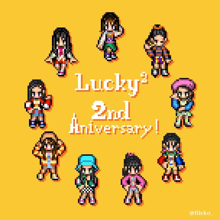 16 93 #Lucky2 3rd Single「ラキラキLOVE!」 リリースおめでとうございます!🎉✨ という訳でご本人たちに直接見てもらえたオクトラ風ドット絵でお祝いです!💃 ちなみに、僕は「Baby Steps!!」が好きです! #ラキラキLOVE #ドット絵 #pixelart 23/02/22 07:10