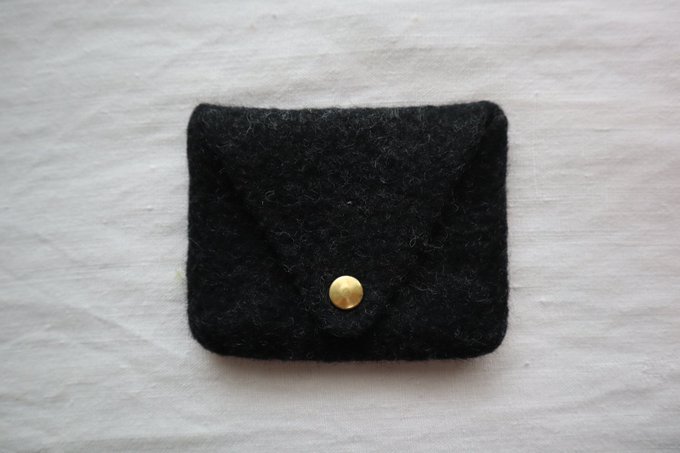 最近黒い服を着るようになりました 不思議と今の気持ちにぴったりはまります カードケースも黒で制作してみました #手創り市online #手創り市online3月 #羊毛フェルト #水フェルト #カードケース #黒 #wetfelting #手仕事 #クラフト #暮らしの道具 #シンプル