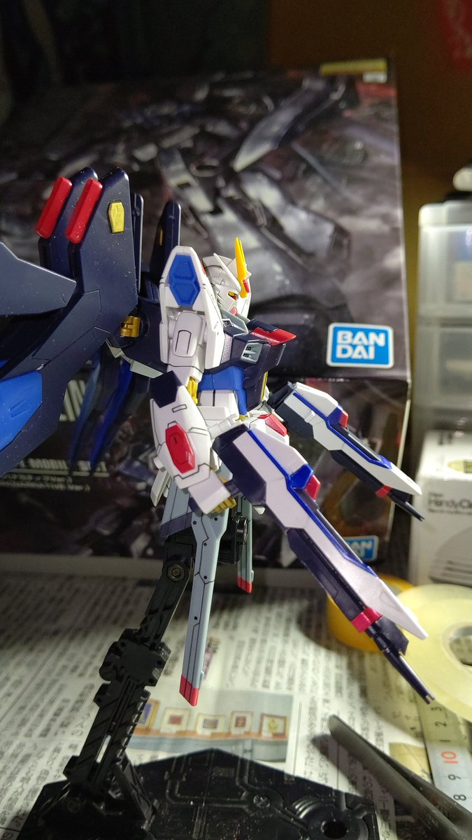 初ミキシングのフリーダム×デスティニー完成ー!! まあ、フリーダムにデスティニーのウィングと武器持たせたくらいですが(^_^;) また違う機体でもやってみたいです( ˇωˇ ) #ガンプラ #ガンプラの画像を貼るとRTされると聞いて