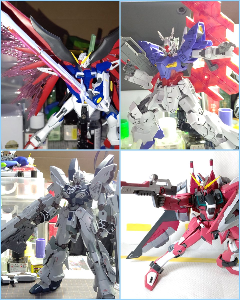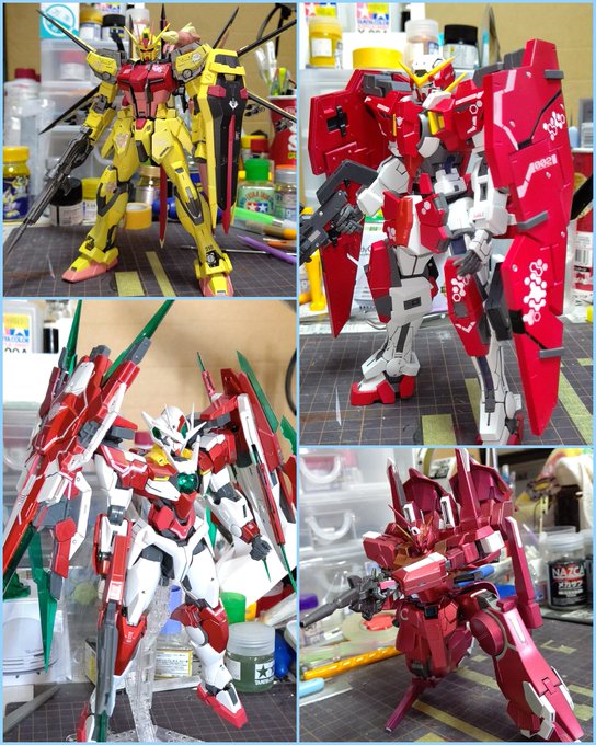 #今年作ったプラモ晒そうぜ パチ組メインで下旬辺りから塗装を始めたかなぁ...未だに悩みながらやってるけどもw フルセイバーとデュナメスはかなり上手くできてお気に入りの子... さりげなく混ざることりちゃん...(・8・)