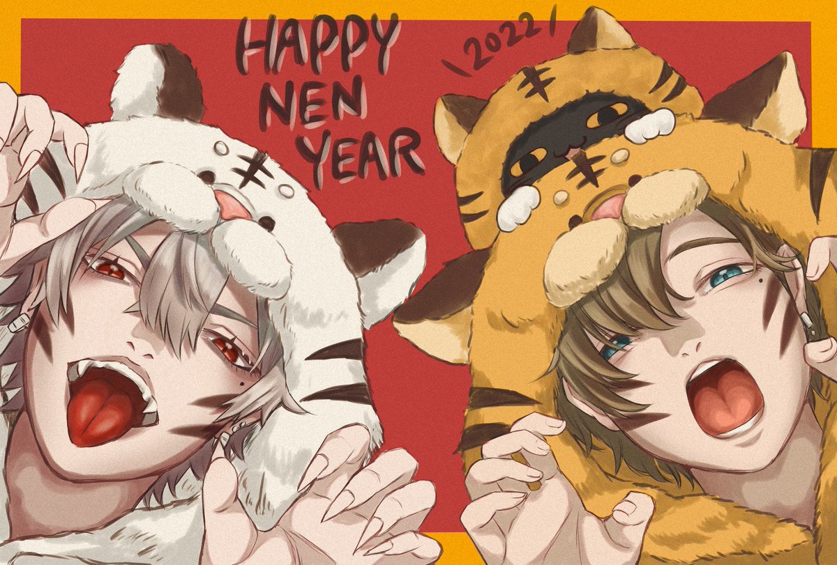 10 74 明けましておめでとうございます🎍 2022年も楽しく過ごせますように〜✨ 🐯ChroNoiR 🐯咎人 #KuzuArt #かな絵 #くろのあとりえ #金剛力也像 #絵ガク 22/01/01 00:05