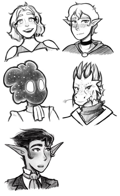 I doodled our dnd party during the mini-session we had tonight and everyone looks literally so soft 🥺🥺🥺 #dnd #homebrew #curseofstrahd #dndart #dungeonsanddragons