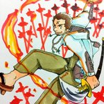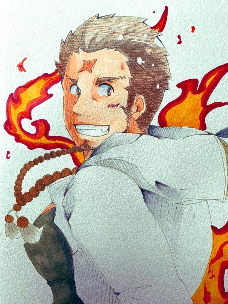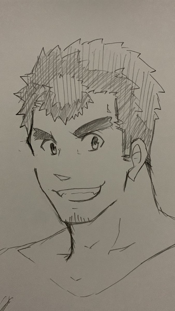おぉ、主人公でねぇか。おめもその服似合っでんなぁ!! デフォルメじゃない、タケマル先輩落書き
