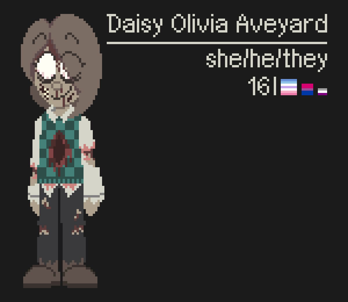 // blood, mild gore new oc time, her name is daisy and he's a ghost teen who hosts a podcast with their friends idk what i'm gonna do with them yet but i'll figure out something #oc #art #artistontwitter #myart #pixelart #pixelartist