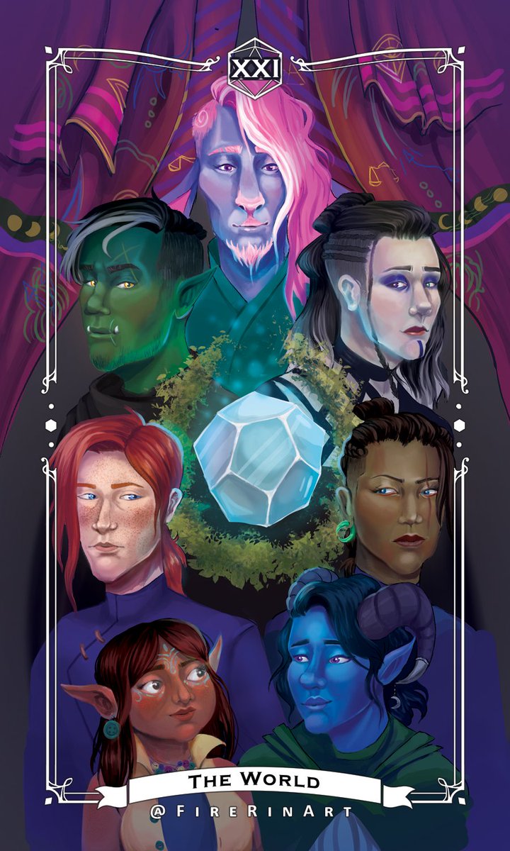 I'm super honoured to be both a participant and mod in the #crittertarotproject ! It was amazing to work with everyone, and I had loads of fun creating "The World" card aka. "The Mighty Nein". Thank you so much to @CriticalRole and @CRTarotProject