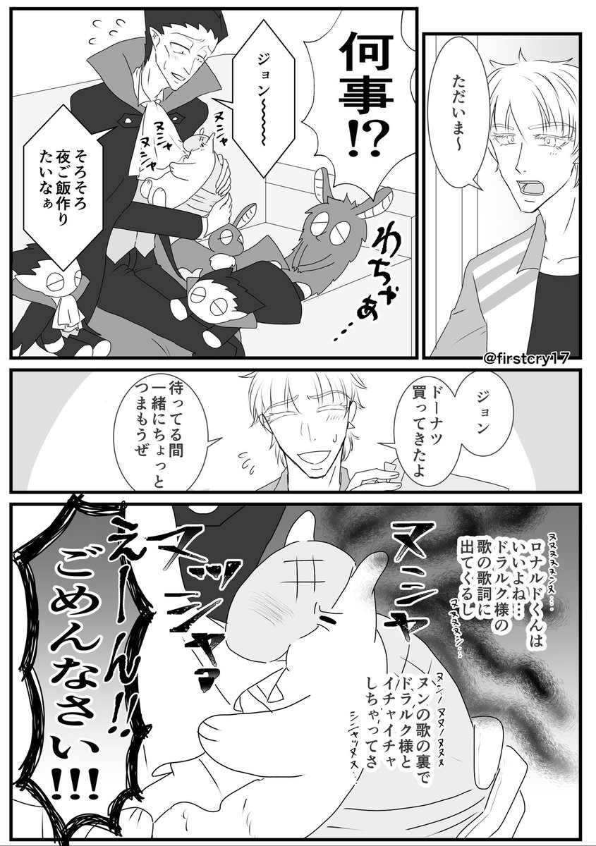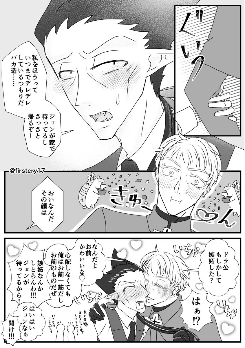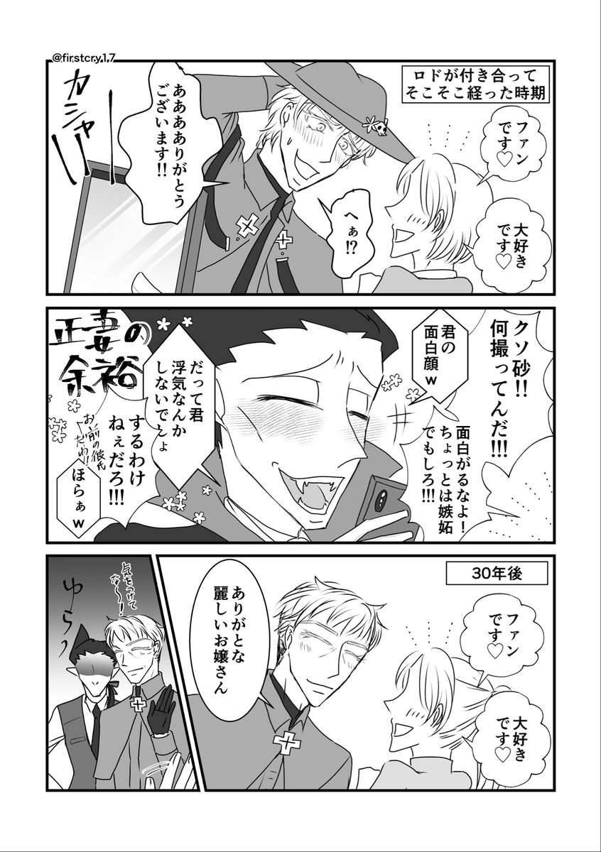ロナドラ。 本編ロドと30年後ロドの├“ちゃんの嫉妬。 以前呟いていたのを描きました笑 □くんがイケおじに成長しちゃって焦る├“ちゃんとか可愛いよね🤗 twitter.com/firstcry17/sta…