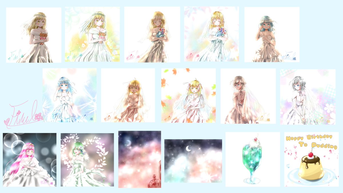 1 6 #今月描いた絵を晒そう 便乗し過ぎだって?そうだよ() あらま、間に合わなかったね✨ ジュライ ブライドじゃん😆(((おい ※落描きは含まれません 21/06/30 18:09