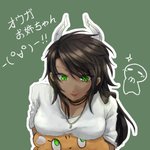 28 142 画像処理+背景 オウガくんとオマエさん #オウ画 #みどりの日なので緑色の画像を貼る 22/05/04 22:41