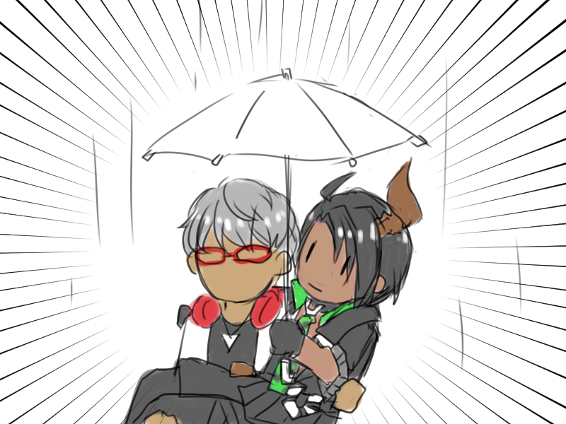 画像処理+背景 オウガくんとオマエさん #オウ画 #みどりの日なので緑色の画像を貼る