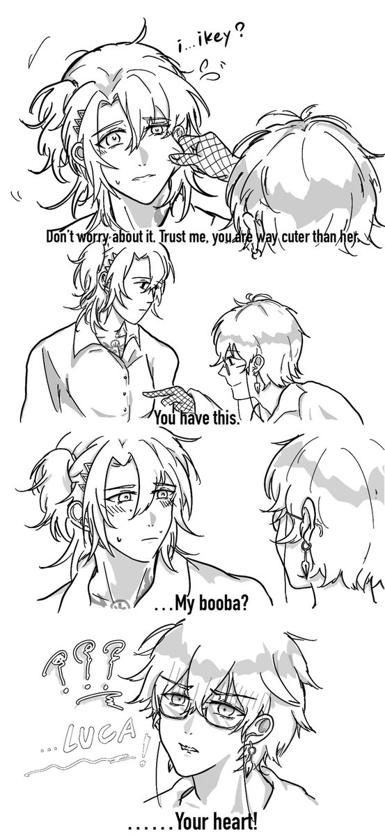 The moment I saw this meme I be like okay I had to draw them anyway… So here it is 😈 *Original picture is the second one #Ikenography #drawluca