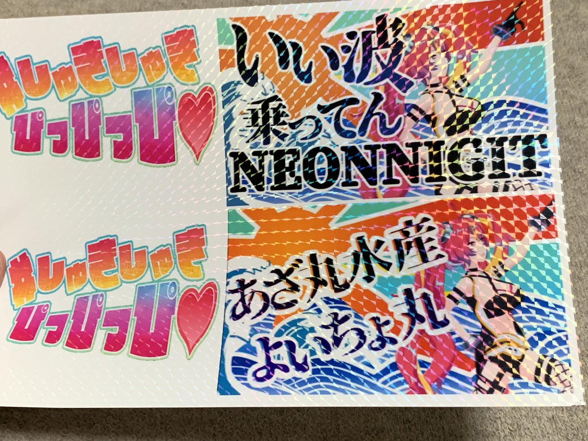 試しにホログラムステッカー買ってきて作ってみたけど案外これはこれでいいかもしれないwww 想像以上に光るw #しゅきしゅきぴっぴっぴ #夜乃ネオン