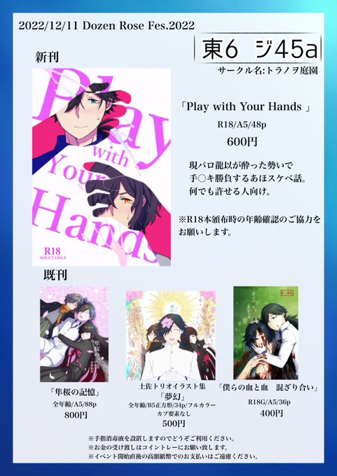 12/11お品書きです!既刊も少しずつ持っていきます pixiv→ #pixiv pixiv.net/artworks/10336… 通販予約→ec.toranoana.jp/joshi_r/ec/ite…