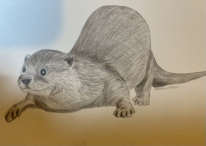 絵の心得も無い、カワウソ好きが愛情のみを込めて描いたらこうなりました。 #カワウソ #鉛筆画 #アナログイラスト
