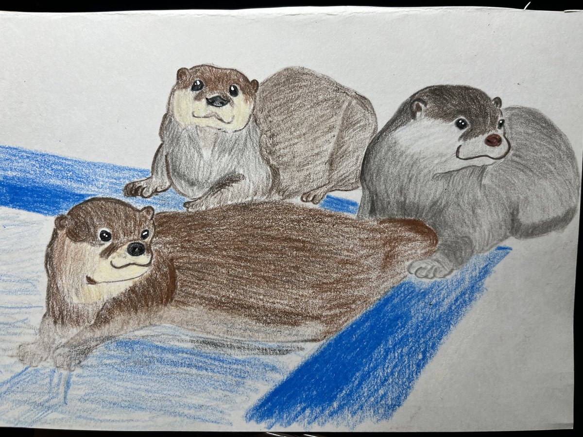 3 18 好きすぎてコツメカワウソのお絵描きしましたパート2! モデルはのとじま水族館の「ヨツバ」と「レベッカ」です! キュッ❤ #コツメカワウソ #カワウソ #カワウソイラスト #色鉛筆画 #のとじま水族館 #ヨツバ #レベッカ 22/07/19 19:04