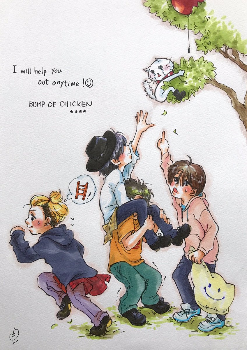 2022年の誕生日絵のテーマはひっそりと『4人のそれぞれ好きなものとテーマカラー』でした!🙏 今年も何とか(遅延しつつも)4枚描けて良かった😭見て下さった方本当にありがとうございました…! #BUMPOFCHICKEN #誕生日ファンアート