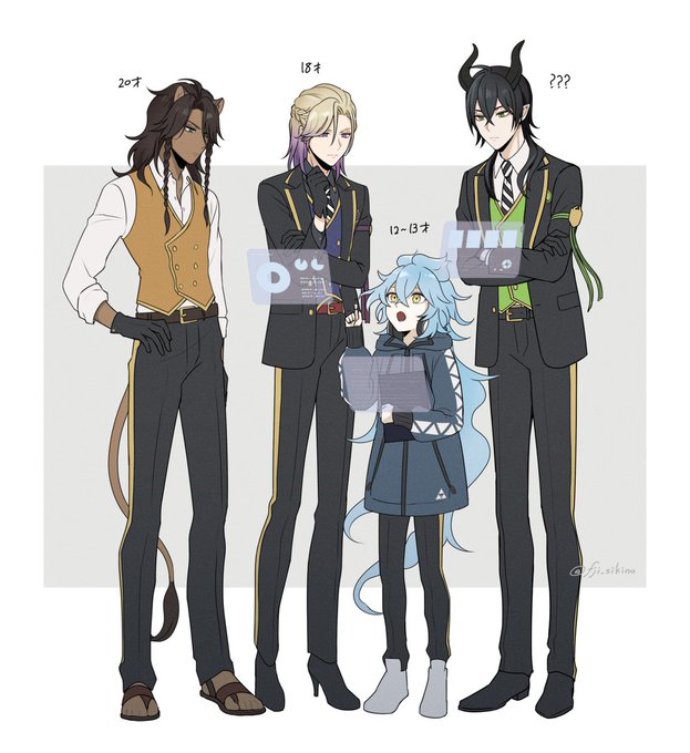 1447 14.6K ⚠︎初期案ネタ落書き 年齢バラバラの3年寮長ズ #ツイステファンアート 23/04/04 21:35